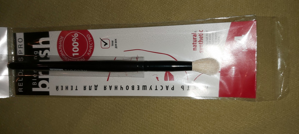 Хорошая кисть, дешевле, чем можно найти в магазинах. Для растушевки оптимальный размер, как раз для равномерного нанесения на веко.