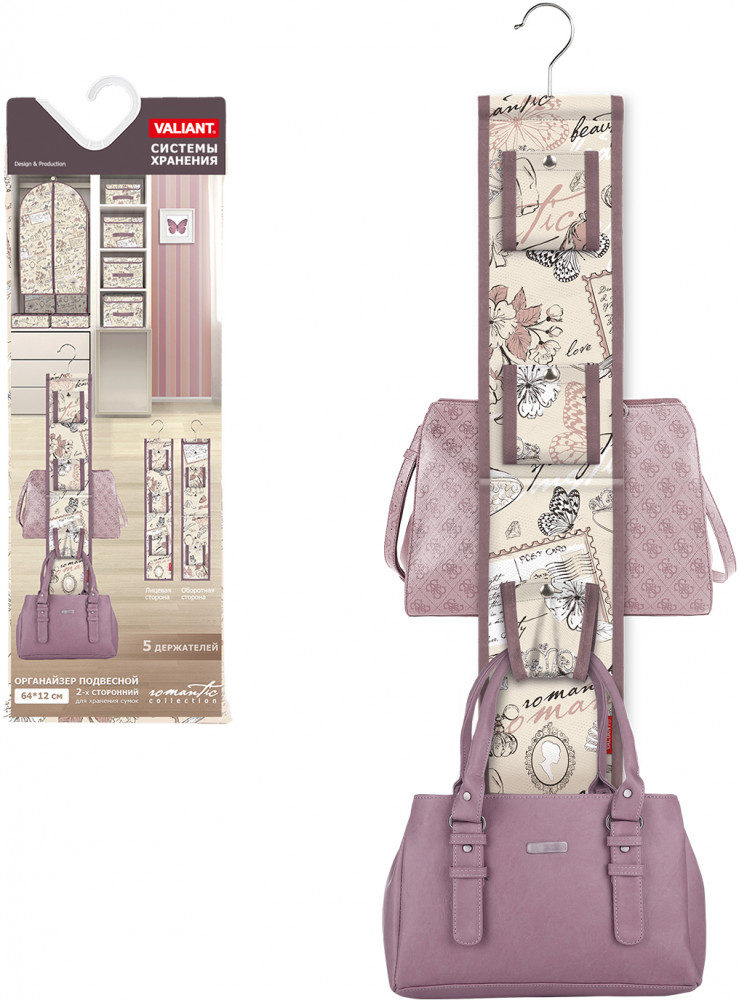 Valiant Органайзер подвесной 2-х сторонний для сумок (вешалка, 5 держателей)В данный момент этот товар отсутствует в продаже. Возможно, у нас найдется аналогичный или похожий товар здесь. Серия: Romantic Подвесной кофр для хранения вещей Valiant изготовлен из высококачественного нетканого материала (спанбонда), который обеспечивает естественную вентиляцию, позволяя воздуху проникать внутрь, но не пропускает пыль. |