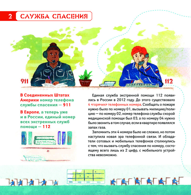 Яркие иллюстрации покажут, как устроен транспорт и станции и станции скорой помощи, какие инструменты используют врачи для спасения жизней, что происходит после того, как диспетчер скорой помощи принял вызов и многое другое.