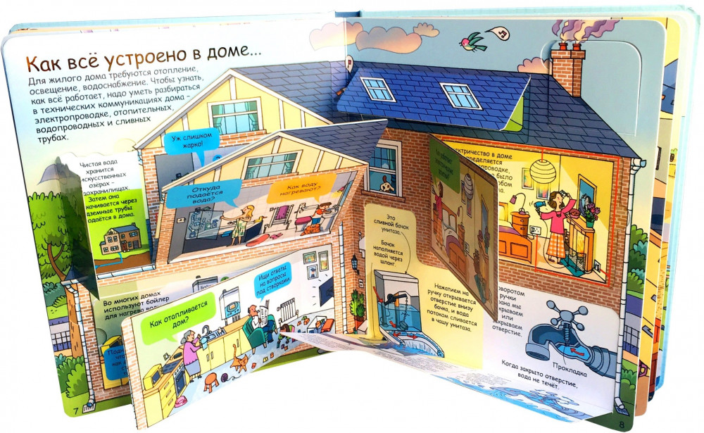 Открой тайны. Как все работаетВ данный момент этот товар отсутствует в продаже. Возможно, у нас найдется аналогичный или похожий товар здесь. Серия: Волшебные створки Ты знаешь, как работают разные вещи, ездят машины, плавают корабли и летают самолеты, как строят дома и как устроен водопровод, как работает бытовая техника и почему в холодильнике холодно, какая бывает спасательная и сельскохозяйственная техника? Загляни под створки (некоторые из них двойные) — и ты узнаешь много нового и сможешь рассказать об этом своим друзьям. |
