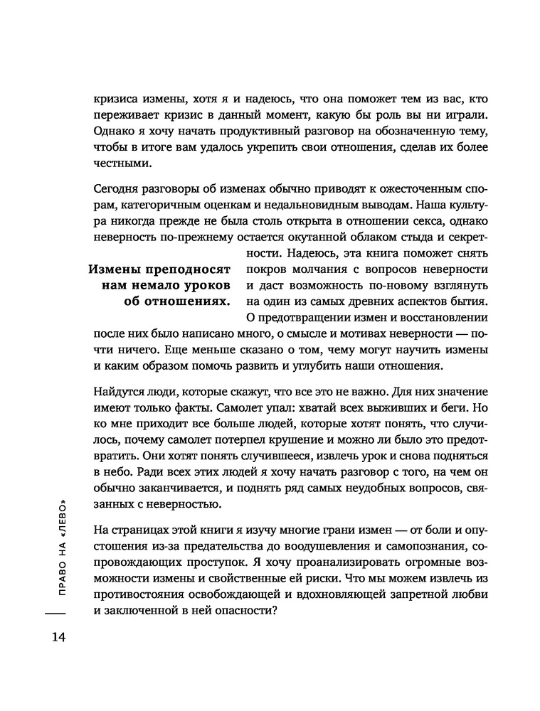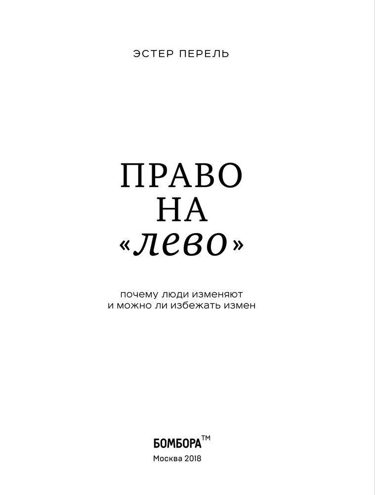 Право на «лево». Почему люди изменяют и можно ли избежать изменВ данный момент этот товар отсутствует в продаже. Возможно, у нас найдется аналогичный или похожий товар здесь. Почему люди изменяют? Что заставляет их заводить вторые семьи, тайные банковские счета, разрабатывать сложные схемы ведения двойной жизни? |
