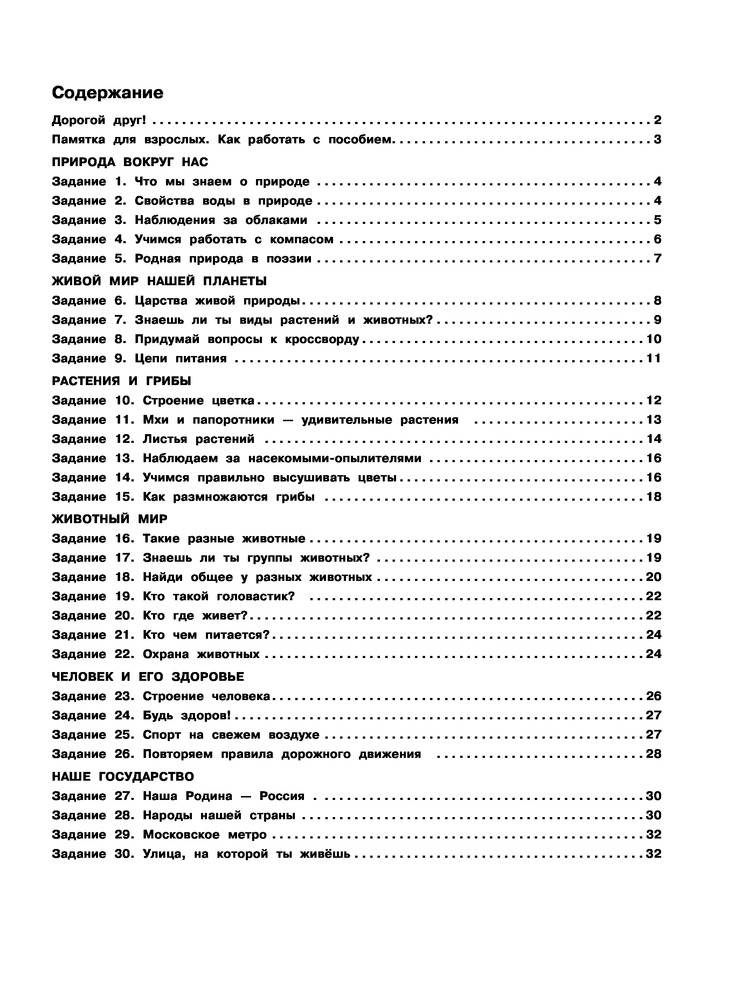Примеры и задания книги помогут ребёнку закрепить навыки проведения практических опытов и наблюдений за явлениями природы и общественной жизни, активизируют мыслительную деятельность, разовьют память, внимание и наблюдательность.