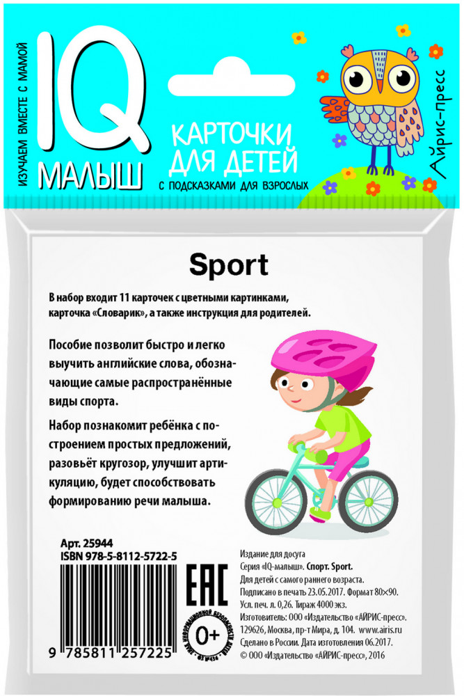 💳 Оплатить за товар можно при получении 🇰🇿 Есть бесплатная доставка по Казахстану 🎁 Копите бонусы с каждой покупки Серия: IQ малыш Набор «Спорт» знакомит ребёнка со словами, обозначающими здания, которые можно найти в городе, помогает расширить словарный запас. В набор входит 15 карточек с цветными картинками, карточка «Словарик» и карточка с инструкцией для родителей. Для детей дошкольного возраста. |