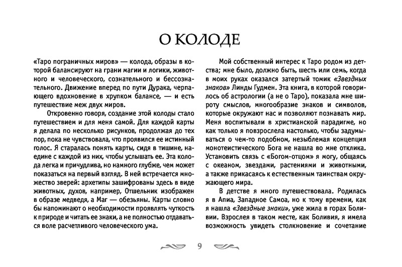 Передарила. Оказалась прям не моей. От слова совсем. Колод и оракулов и трактовок нынче столько что приходится фильтровать и не идти по поводу маркетинга, который только увеличивает продажи не более. Не повторяйте мои ошибки. Все что хотелось по этому поводу сказать.
