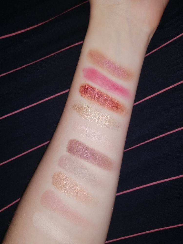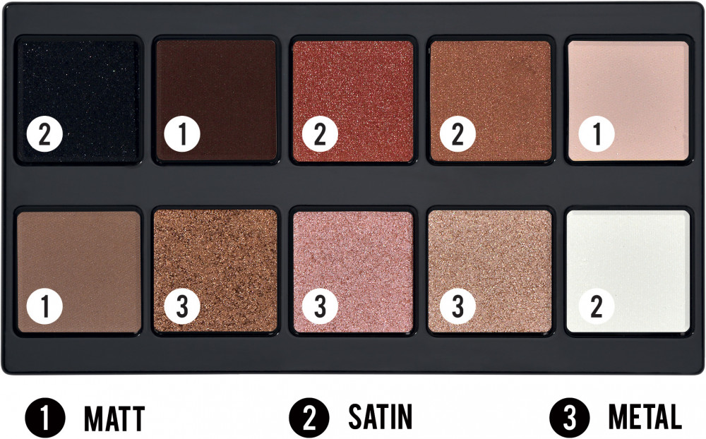 Классные нюдовые оттенки, яркий макияж не будет, на то, они и нюдовые,но поэкспериментировать вполне большая палитра , мне очень понравилась!!!