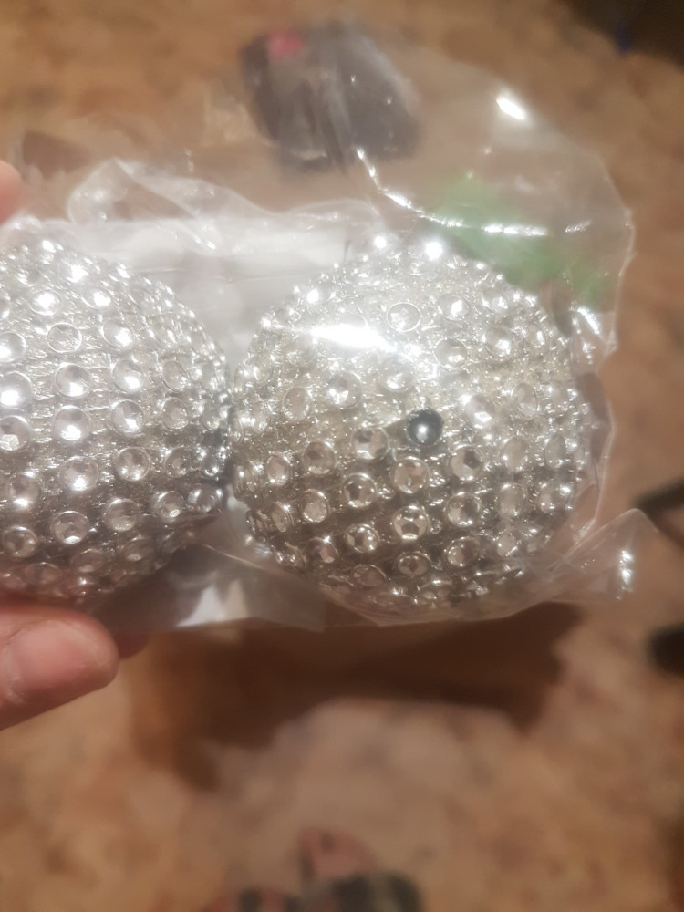 Красивые украшения, очень легкие. Подвесила на елку на тонкие серебристые нити люрекса. Огни гирлянды красиво отражаются в шарах
