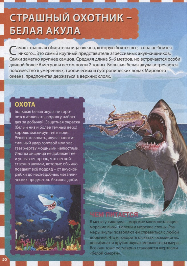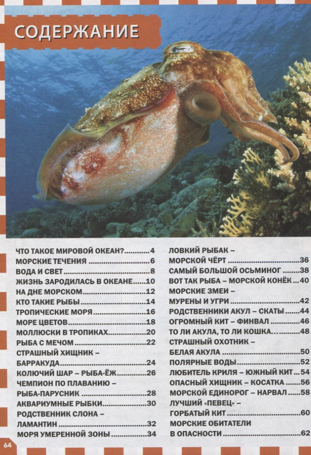 Морские обитатели. Детская энциклопедияВ данный момент этот товар отсутствует в продаже. Возможно, у нас найдется аналогичный или похожий товар здесь. Серия: Популярная детская энциклопедия Представляем новую серию детских энциклопедий, которая точно понравится вам и вашему ребёнку: небольшой удобный формат, краткая подача материала, только самые важные факты и занимательные истории, а также великолепные иллюстрации. «Морские обитатели» — это книга об удивительных обитателях Мирового океана. На страницах нашей энциклопедии вы узнаете, как зародилась жизнь в воде, кто обитает в морях тропической и умеренной зоны, в полярных водах, познакомитесь с мирными рыбками и опасными хищниками, загадочными осьминогами и необычными ламантинами, симпатичными китами и грозными косатками. Подарите вашему ребёнку все книги серии «Популярная детская энциклопедия»! |