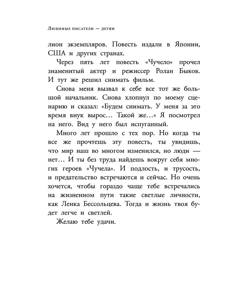 ЧучелоВ данный момент этот товар отсутствует в продаже. Возможно, у нас найдется аналогичный или похожий товар здесь. Серия: Любимые писатели — детям Шестиклассница Лена Бессольцева приезжает жить к дедушке в спокойный провинциальный городок. Здесь ей предстоит многое пережить: жестокость одноклассников, предательство друга, равнодушие педагога... За внешней хрупкостью и невероятной улыбкой Лены скрывается отважная, сильная девочка, способная не только понять и простить, но и показать людям страшные изъяны, с которыми они живут, не замечая их... Повесть «Чучело» В. Железникова впервые увидела свет в 1981 году, но и сегодня продолжает оставаться актуальной. Для среднего школьного возраста. |