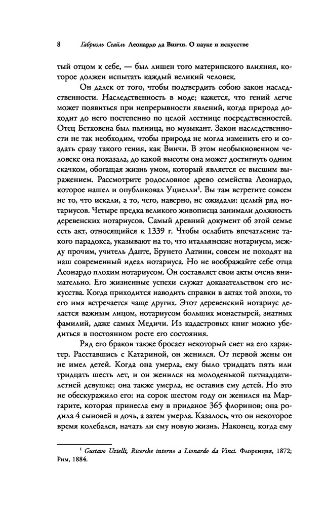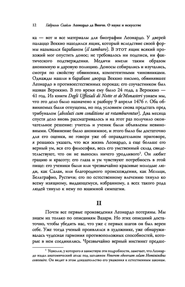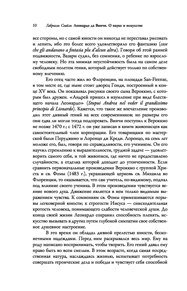 Леонардо да Винчи. О науке и искусствеВ данный момент этот товар отсутствует в продаже. Возможно, у нас найдется аналогичный или похожий товар здесь. Серия: Классика научной мысли Габриэль Сеайль (1852–1922) —— французский историк философии и живописи, профессор Сорбонны, автор нескольких работ по эстетике, социологии и философии морали, имевших авторитет на рубеже XIX и XX веков. Опираясь на весь доступный и систематизированный им корпус сведений о Леонардо да Винчи, автор рассуждает о вкладе этого универсального человека в науку, приводя множество цитат из рукописей мастера. Последние он помещает в контекст современной ему ноосферы и сопровождает подробными комментариями. Основную часть предваряет биография Леонардо, опирающаяся на жизнеописание Джорджо Вазари и другие, менее известные источники, не доступные на русском языке. Всестороннее исследование, не утратившее актуальности по сей день, приводится в современной орфографии. Все ссылки на сторонние издания сохранены. |