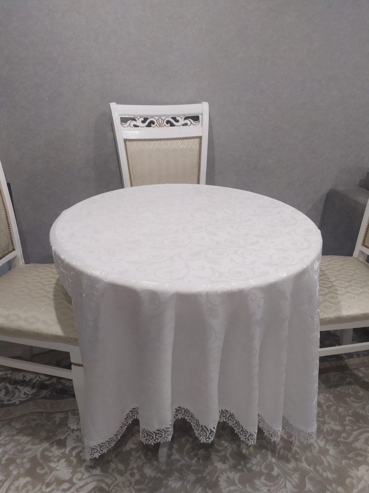 Скатерть в принципе понравилась, но минус в том, что ее не вытерешь тряпкой, все равно нужно поверх стелить прозрачную клеенку.