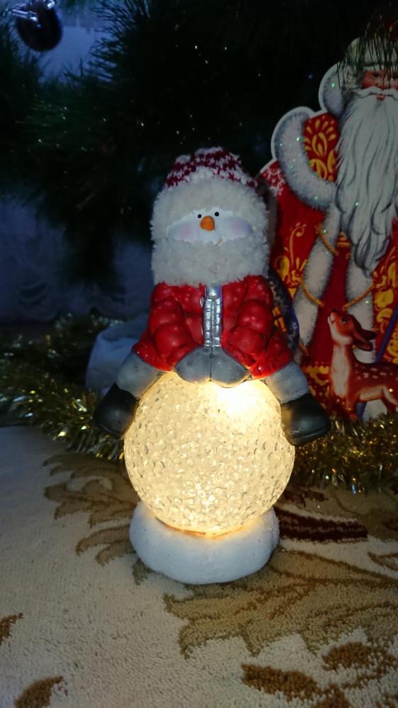Снеговичок понравился. Под ёлкой смотрится замечательно. Размер не маленький, светится хорошо.