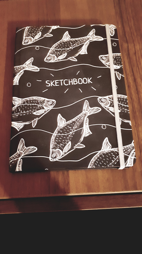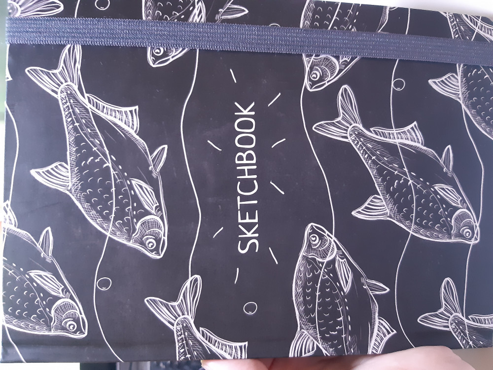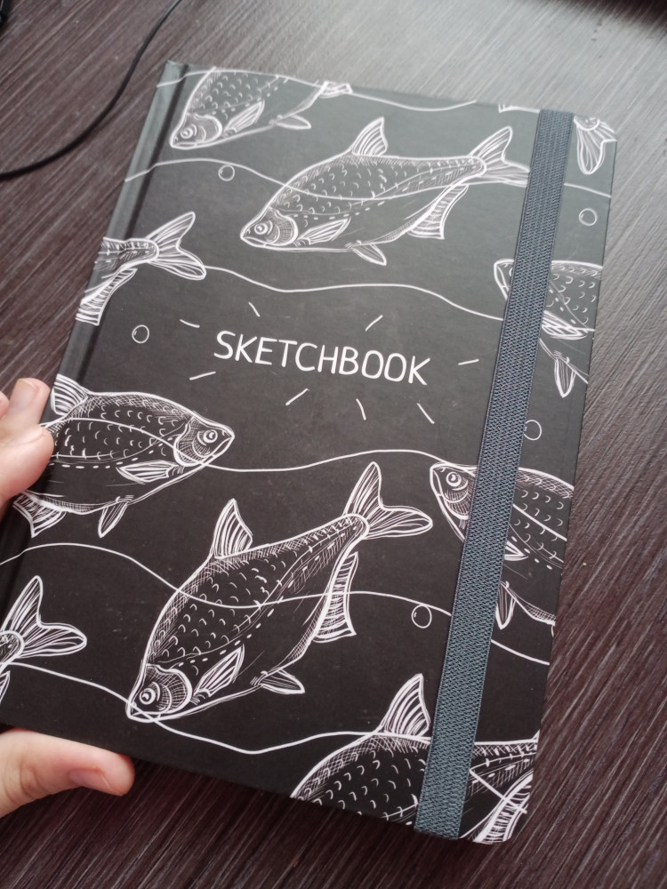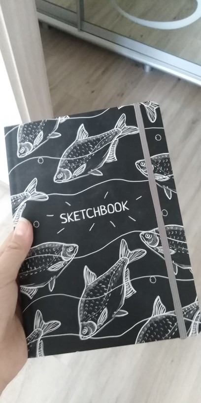 Приходит без какого-либо упаковки, поэтому изначально немного покоцанный (совсем немного). Бумага не плотная, не белая и подходит для карандашей, но цветные просвечивают. Не рисую ни маркерами, ни красками, так что не знаю, подходит ли скетчбук для таких материалов. В целом, хорош для набросков, с удобной резинкой и симпотичным дизайном.