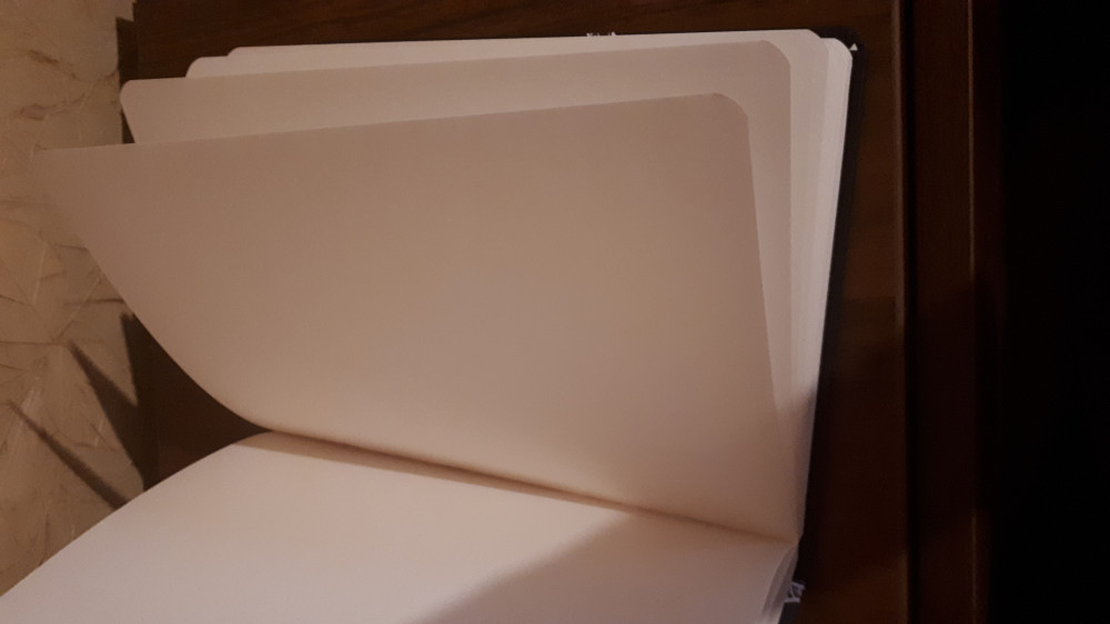 Определенно не лучший скетчбук, который у меня был. Бумага очень тонкая, и хотя я это знала из предыдущих отзывов, надеялась, что хотя бы для набросков карандашом подойдёт. Но на такой тонкой как-то даже неприятно рисовать. Или я стала слишком придирчива, хз. В общем, во второй раз покупать точно не буду
