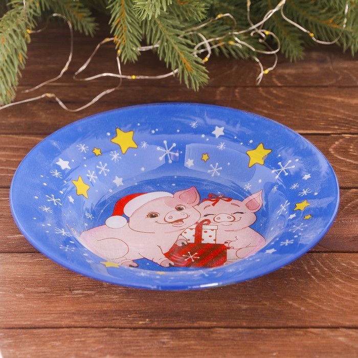 Новогодняя тарелка «Поросята», выполненная из стекла, непременно украсит праздничный стол. Тарелка декорирована изображением забавных поросят. Красочность оформления придется по вкусу и ценителям классики, и тем, кто предпочитает утонченность и изящность. Такая необычная тарелка будет отличным подарком для ваших друзей и близких. |