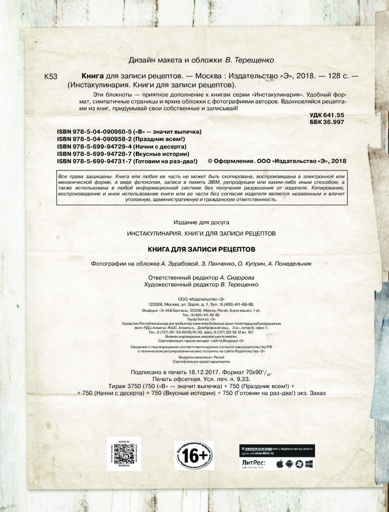 Это книга для записи рецептов — изящный аксессуар, который идеально дополнит книгу от любимого автора! Записывай понравившиеся рецепты и свои собственные, готовь, удивляй!