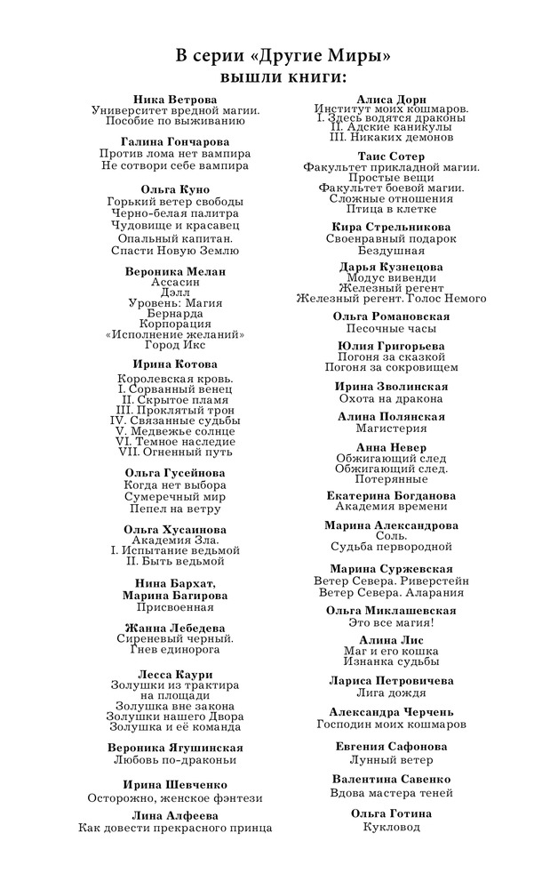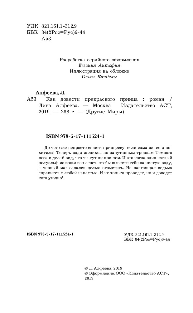 Как довести прекрасного принцаВ данный момент этот товар отсутствует в продаже. Возможно, у нас найдется аналогичный или похожий товар здесь. Серия: Другие миры До чего же непросто спасти принцессу, если сама же ее и похитила! Теперь води женихов по запутанным тропкам Темного леса и делай вид, что ты тут ни при чем. И это когда один наглый полуэльф из кожи вон лезет, чтобы вывести тебя на чистую воду, а черный маг задался целью отомстить. Но настоящая ведьма справится с любой напастью. И не только проведет, но и доведет кого угодно! |