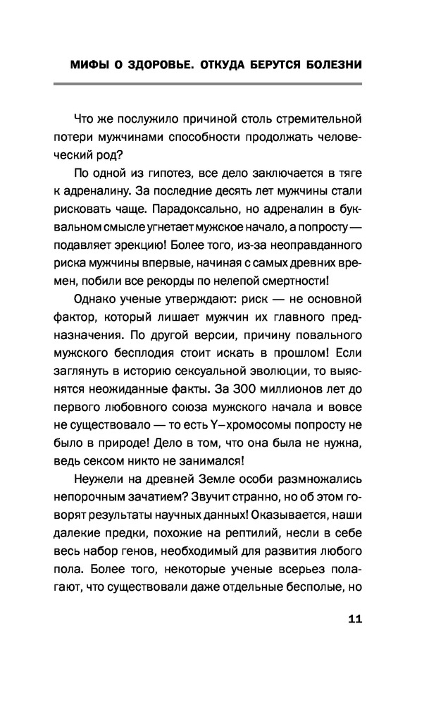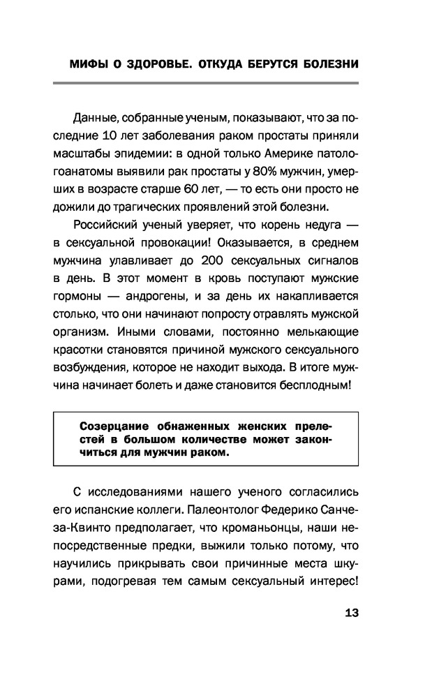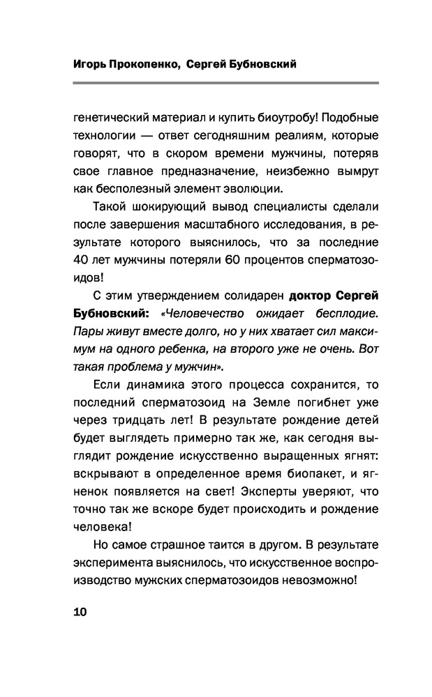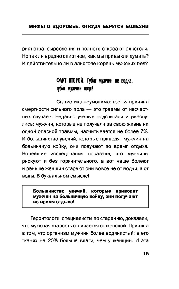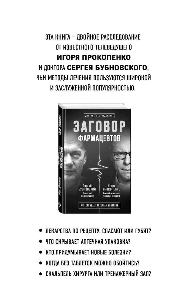 Книга доктора Сергея Бубновского и документалиста Игоря Прокопенко посвящена мифам, которые плотным кольцом смыкаются сегодня вокруг современного человека и напрямую угрожают его физическому, психическому и нравственному здоровью. Мощный гипноз индустрии фармакологии и производства продуктов питания, рекламы и фитнеса дает иллюзию приобщения к здоровому образу жизни, в то время как ситуация складывается прямо противоположным образом. Замаскированная под здоровую еда, пищевые добавки, диеты, пластические операции и неразумное использование фитнес-программ гарантированно отнимают здоровье, а не прибавляют его.