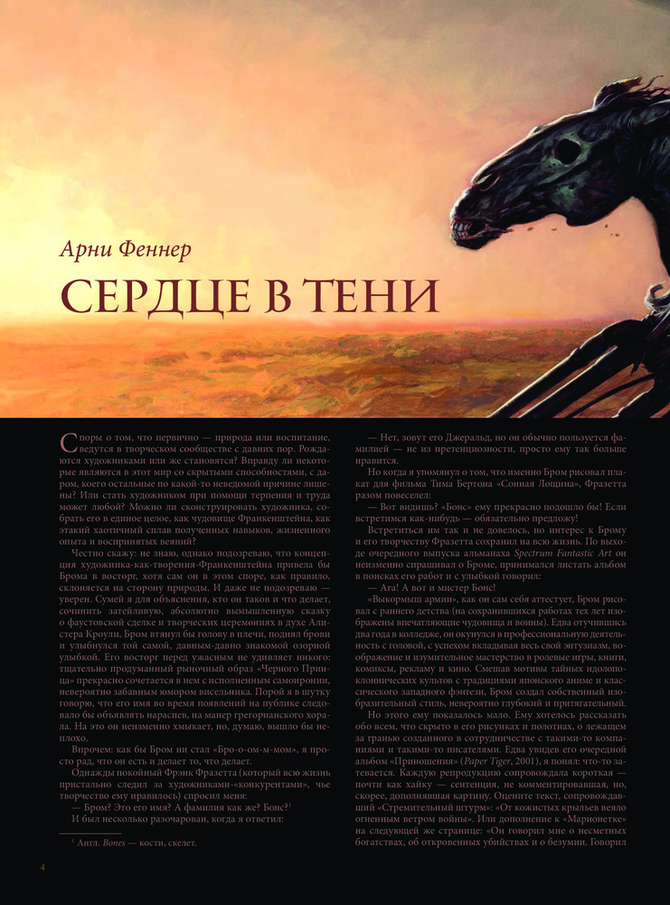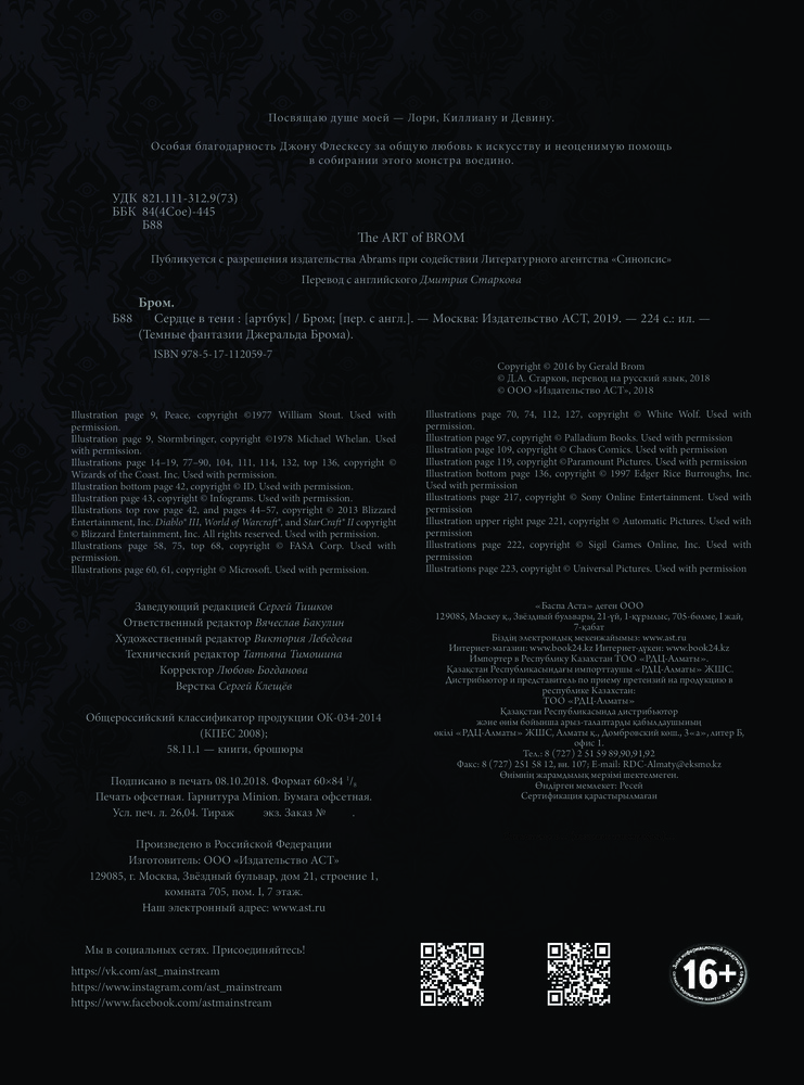 Брал эту книгу в 2018 году . Случайно увидел , что нет неодного отзыва об этой книге !!! Это несправедливо! Книга - альбом просто шикарная ! Последовательность становления Брома как художника , его приёмы рисунка и сами иллюстрации ! Качество печати высокое ! К покупке ооочень рекомендую!