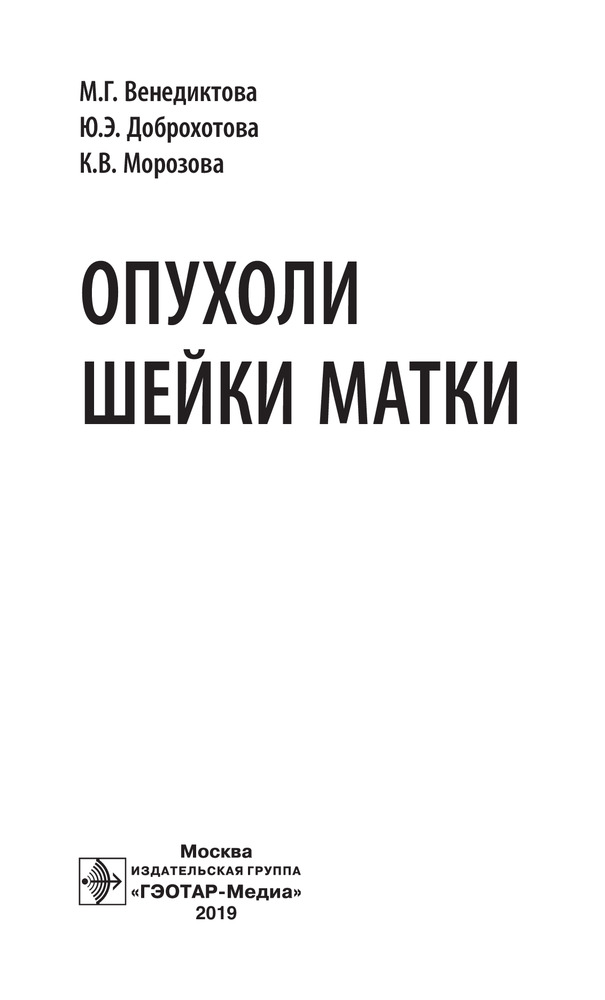 Опухоли шейки маткиМарина Георгиевна Венедиктова, Ксения Владимировна Морозова, Юлия Эдуардовна Доброхотова