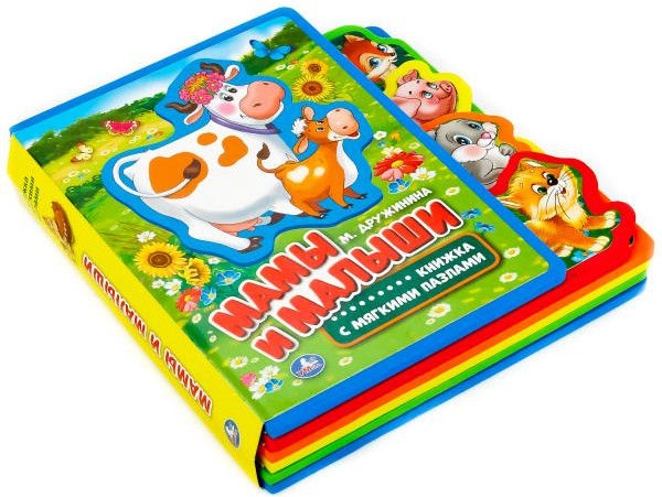 Серия: Книжка с мягкими пазлами Книжка с вырубкой-закладками и пазлами «Мама и малыши» — уникальное издание 4 в 1. Странички и фигурные пазлы мягкие, их приятно трогать и сжимать. На каждом развороте вкладыш с изображением животного, который ребёнок сможет самостоятельно достать из углубления с выемкой для пальчика и вставить обратно. С фигурным пазлом можно играть, под ним в книге располагается картинка-сюрприз! Вырубка в виде животных служит закладками на их странички. |