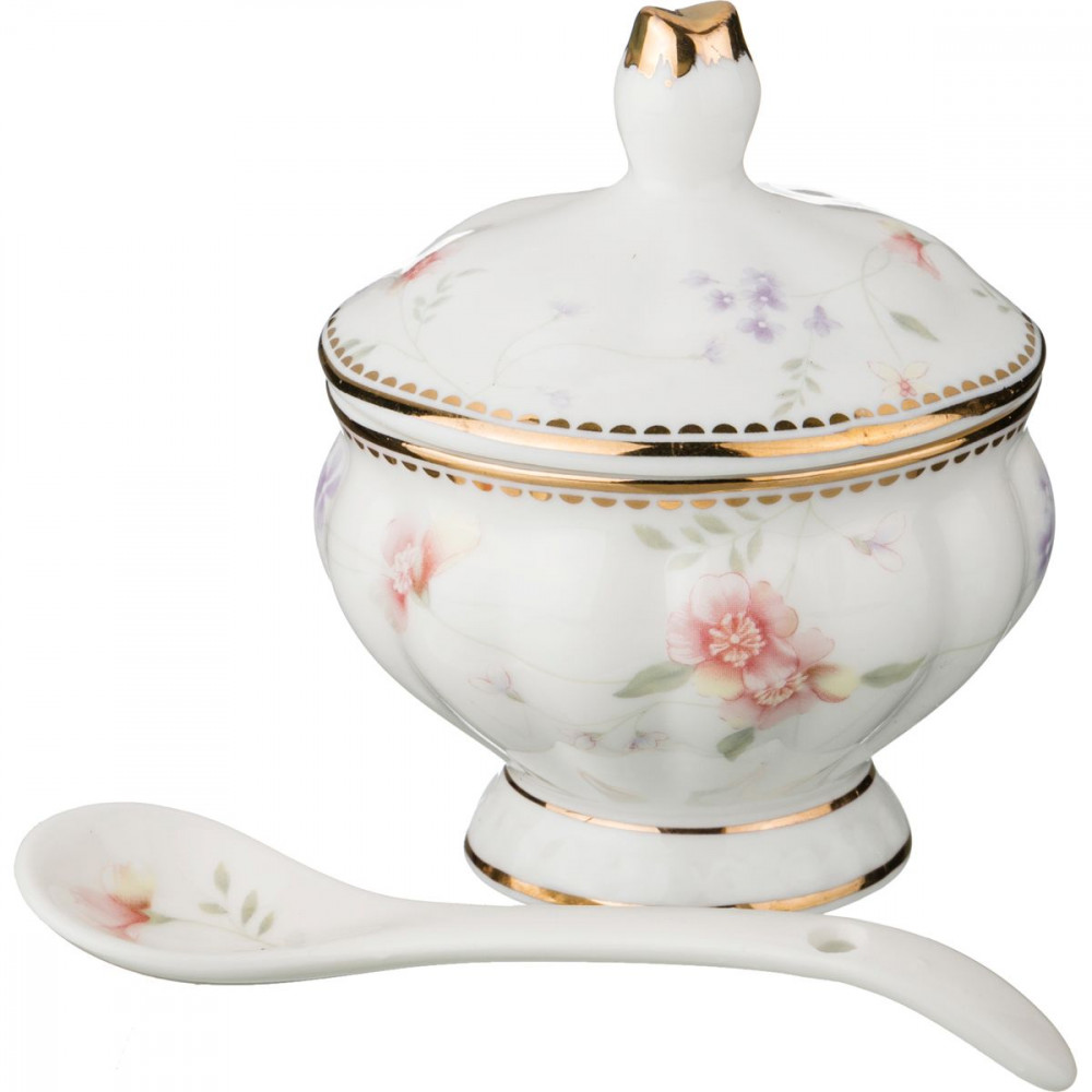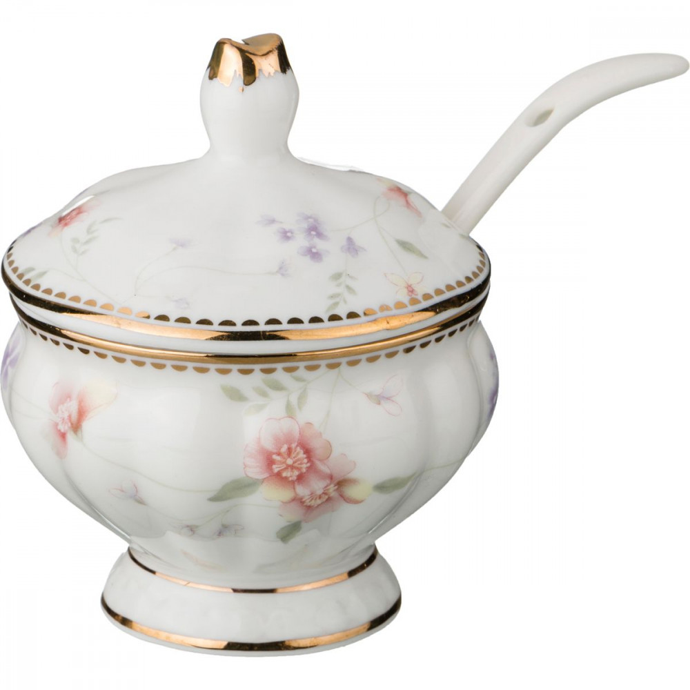Сахарница на ножке изготовлена из фарфора высокого качества и украшена красивым оформлением. Сахарница закрывается крышкой, а также имеет удобную ложечку. Фарфоровая сахарница несомненно впишется в любой интерьер благодаря лаконичному дизайну, натуральным материалам и высокой функциональности. Такому подарку будет рада любая хозяйка!