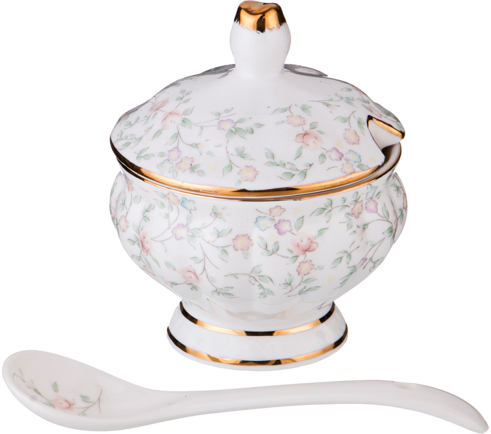 Сахарница на ножке изготовлена из фарфора высокого качества и украшена красивым оформлением. Сахарница закрывается крышкой, а также имеет удобную ложечку. Фарфоровая сахарница несомненно впишется в любой интерьер благодаря лаконичному дизайну, натуральным материалам и высокой функциональности. Такому подарку будет рада любая хозяйка!