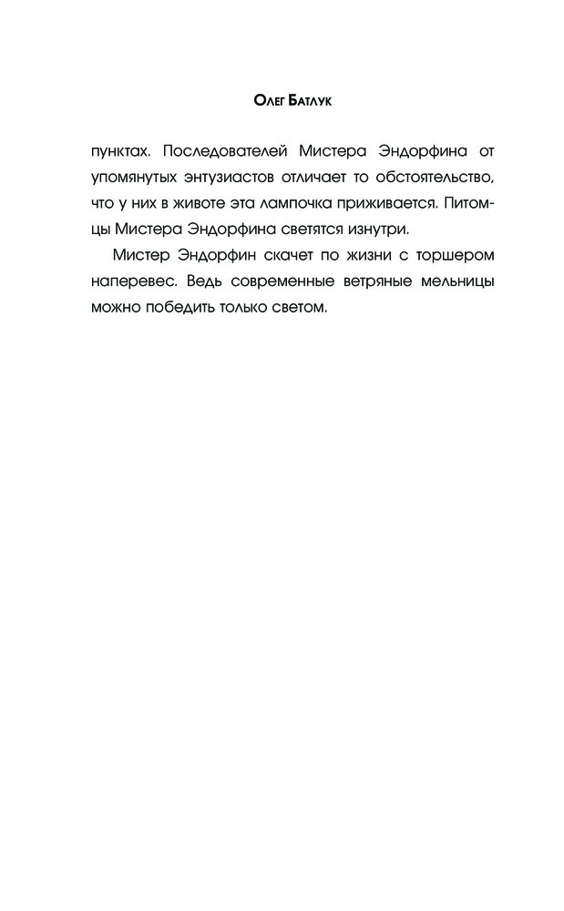 Давно и с интересом читаю этого автора в ФБ. Давно хотела купить и прочесть его первое произведение "Записки неримского папы", но тираж был моментально раскуплен. Купив книгу "Мистер Эндорфин", я не пожалела ни разу. Смех -лучший антидепрессант, смех от хорошей, доброй, ироничной книги - вдвойне. Очень рекомендую всем, кто любит скоротать вечер с хорошей книгой! Спасибо Флипу за уведомление о поступлении товара в продажу, за своевременную доставку и за приятную цену!