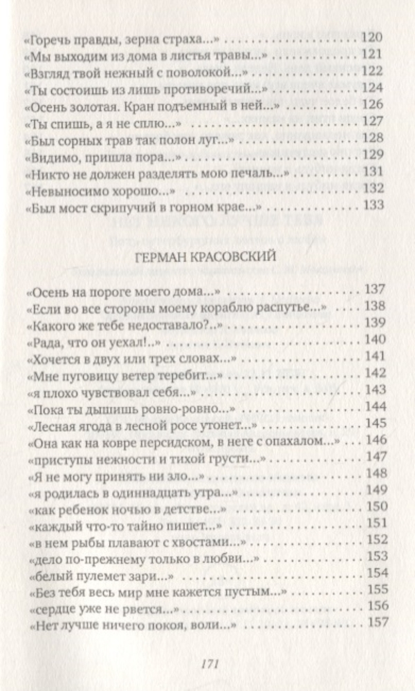 Серия: Современная поэзия В сборник вошли произведения петербургских поэтов — Ипполита Матвеева, Дениса Веселова, Петра Клёнова, Ивана Васильева и Германа Красовского. Всех авторов объединяет не только принадлежность к петербургской поэтической школе, но и восхищение перед щемящей красотой мира, таинственностью природы и непостижимостью Женщины. В поисках своих идеалов они отправляются в путешествие по истории и культуре человечества, встречая на пути то римских, то греческих богов, то французских, то немецких писателей, художников и других поэтов, скрытые цитаты из которых разбросаны по книге, как бриллианты по небесному своду. Эрос и Танатос ходят рядом, взявшись за руки. Любовь земная переходит в небесную, а небесная становится земной. Тайна жизни и смерти бьется как пульс в этих строчках, рождая эхо бывших и будущих чувств. |