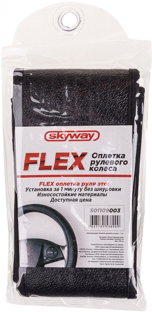 Оплетка Skyway Flex-2 обеспечивают надёжный контакт ладоней с ободом рулевого колеса. Удобная установка за 1 минуту без шнуровки. Оплетка выполнена из высококачественной экокожи, которая сохраняет привлекательный внешний вид в течение длительного времени. Она не раскаляется при воздействии солнечных лучей, а в зимнее время не холодная на ощупь. Применение инновационных материалов на внутренней стороне оплетки исключает ее проскальзывание на руле.