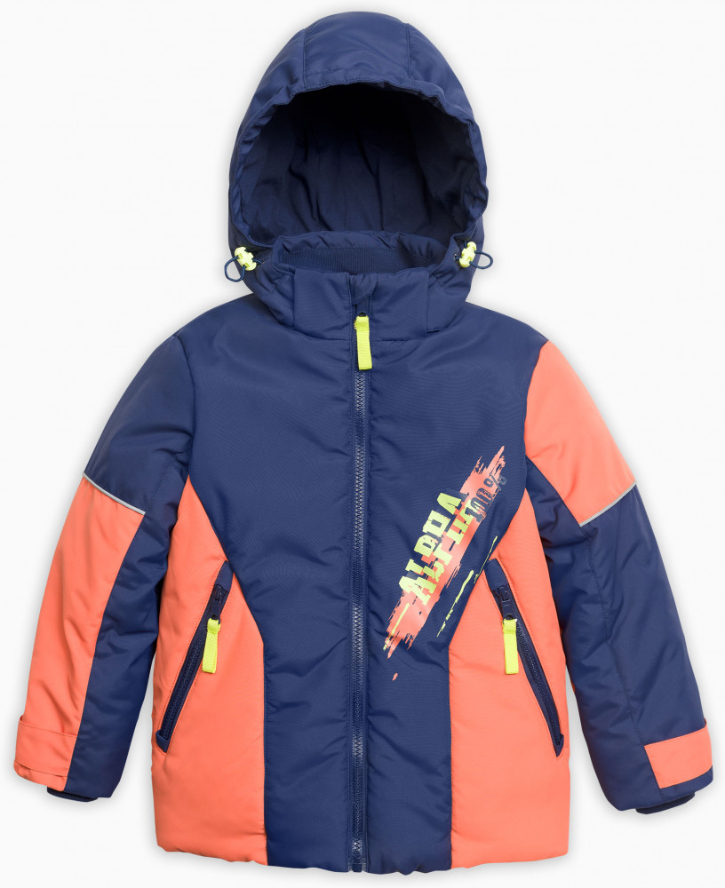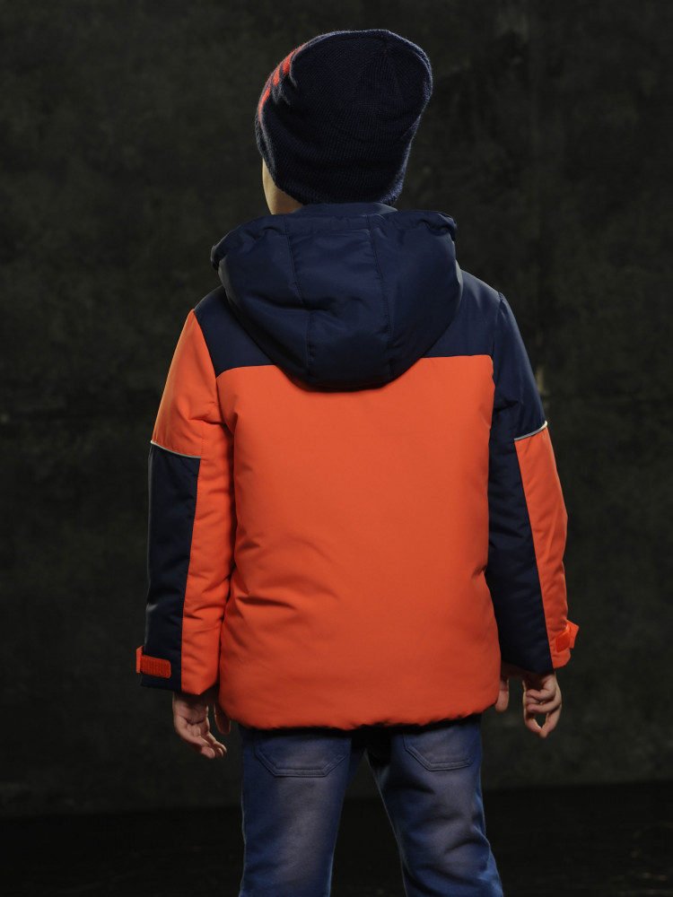 Куртка хорошего качества. Оранжевый цвет очень хорошо дополняет темно-синий. Куртка соответствует фотографии в каталоге.