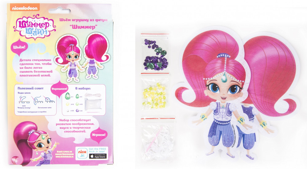 Shimmer & Shine Шьем игрушку из фетра «Шиммер»В данный момент этот товар отсутствует в продаже. Возможно, у нас найдется аналогичный или похожий товар здесь. Что для девочки может быть лучше красивой куклы в виде любимой героини? Только игрушка, созданная ее собственными руками. Чтобы ее выполнить, в наборе есть все необходимое. Сложите 2 детали из фетра и сшейте с помощью соединительного шва, набивая сначала ручки и ножки, а потом туловище. Фрагменты выкройки имеют специальную перфорацию, чтобы их было легко сшивать безопасной пластиковой иголкой, входящей в комплект. Украсьте наряд Шиммер пайетками, закрепите серьги на ушках и подвеску-капельку на лбу. Сделайте для нее бусы и браслет. У вас получится милая куколка высотой 23 см, с которой можно весело играть. А во время ее создания юная рукодельница будет учиться шить и развивать мелкую моторику, воображение и чувство прекрасного. |