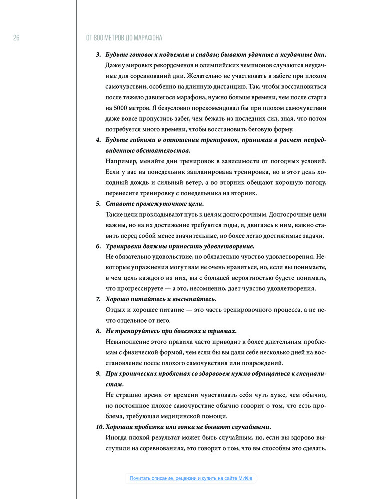 Для тех, кто ранее не читал про бег. Тренировочные планы не подходит. Очень запутанные системы с милями и еженедельным километражам.