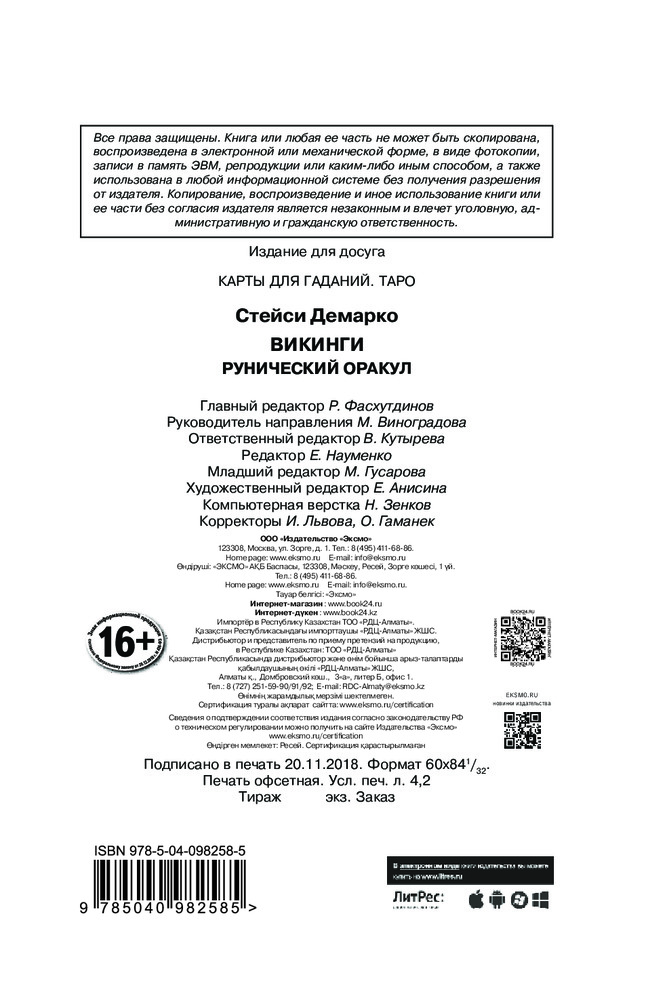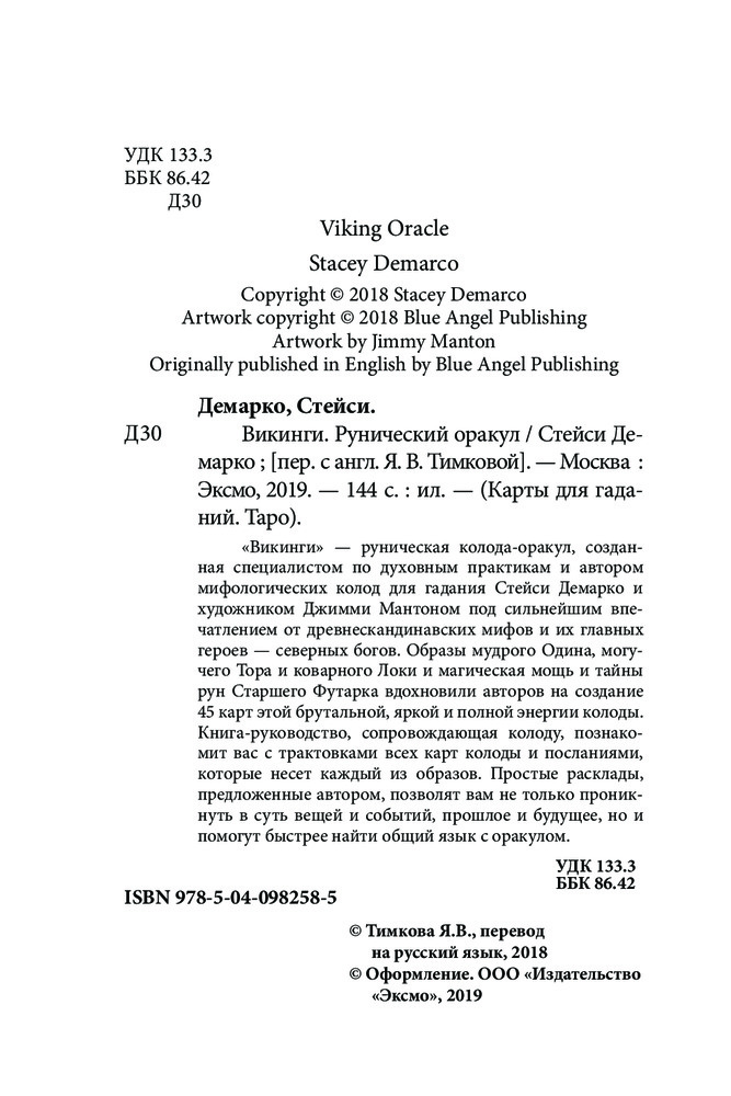 Викинги. Рунический оракул (45 карт и руководство в коробке)В данный момент этот товар отсутствует в продаже. Возможно, у нас найдется аналогичный или похожий товар здесь. Серия: Карты для гаданий. Таро «Викинги» — руническая колода-оракул, созданная специалистом по духовным практикам и автором мифологических колод для гадания Стейси Демарко и художником Джимми Мантоном под сильнейшим впечатлением от древнескандинавских мифов и их главных героев — северных богов. Образы мудрого Одина, могучего Тора и коварного Локи и магическая мощь и тайны рун Старшего Футарка вдохновили авторов на создание 45 карт этой брутальной, яркой и полной энергии колоды. Книга-руководство, сопровождающее колоду, познакомит вас с трактовками всех карт колоды и посланиями, которые несет каждый из образов. Простые расклады, предложенные автором, позволят вам не только проникнуть в суть вещей и событий, прошлое и будущее, но и помогут быстрее найти общий язык с оракулом. |