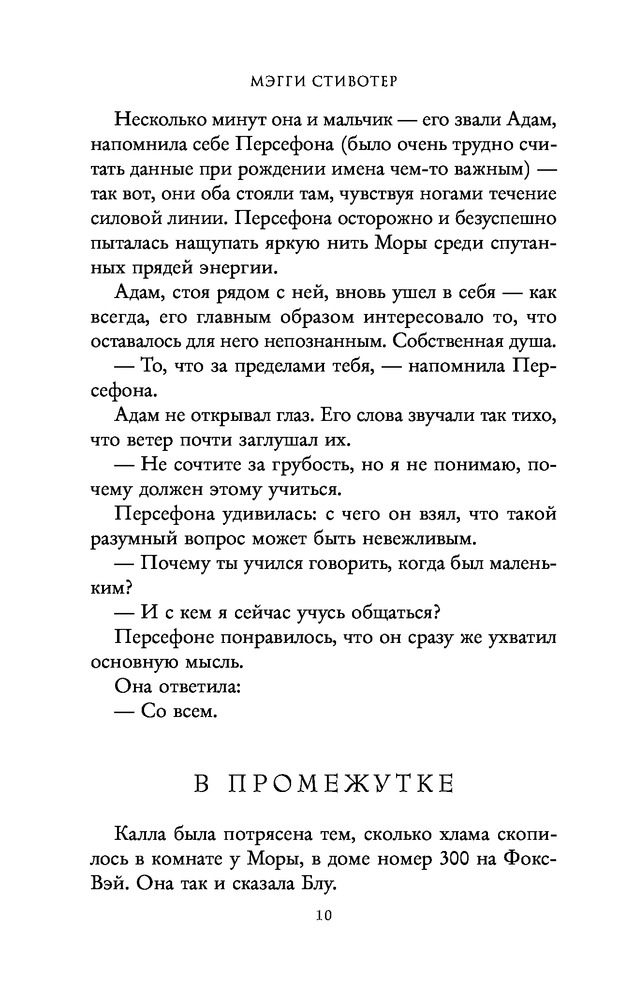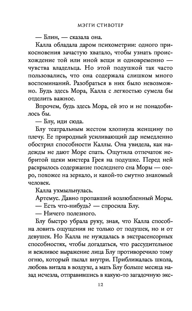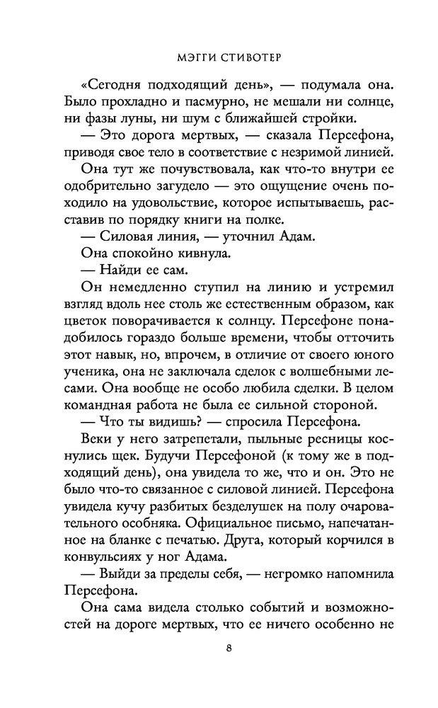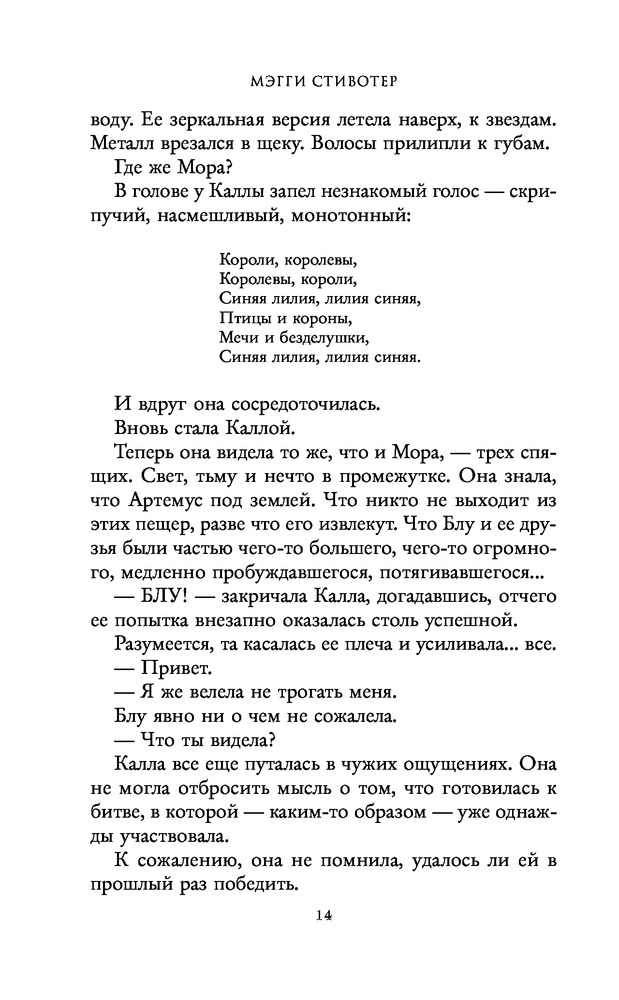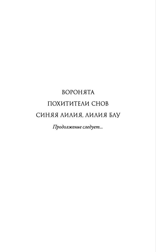 третья часть не хуже второй, даже если не лучше! 1. слог, не знаю почему он многим так не нравится, но лично я просто растворяюсь в нем, очень очаровывает, и моментами приемы, которые использует мэгги кажутся такими необычными и странными, что нравится мне вдвойне. 2. персонажи в этой книге не особо меняются, разве, что есть изменения в Блу и Адаме, в остальном, как таковых изменений в других персонажах я не заметила. но! очень многогранны и интересны, нравится каждый из воронят и самса Блу конечно же) 3. сюжет, он очень и очень интересный, атмосферный. тут бывают и очень смешные моменты и стеклянные и всякие странные, которые очень непонятны, но очень интересны. в общем эту книгу нельзя пересказать, конечно можно рассказать очень кратко, но чтобы показать полную, прекрасную картину книги, надо все-таки прочесть самому. также в этой книге у меня работает очень богатое воображение, я очень четко представляю пещеры, школу, дом Блу, дом Ганси, и все эти картины переплетаются у меня с весенним/летним вайбом, я представляю все очень ярко, с такими зелёными оттенками, а ещё в этой серии для меня всегда солнечно, примерно такая картина у меня в голове. 4. взаимоотношения героев мне очень нравится, именно тем, что они неидеальные, интересные, даже не знаю как описать. а ещё мне нравится, что в этой книге минимум любовной линии, и когда она все-таки появляется, то за ней очень трепетно и интересно наблюдать. в общем я любитель slow burn! 5. оценка: 5/5❣️ это все, что могу сказать, надеюсь последняя книга в серии меня не разочарует. также собираюсь прочитать трилогию про Ронана, как раз в мае/июне выходит вторая часть трилогии.