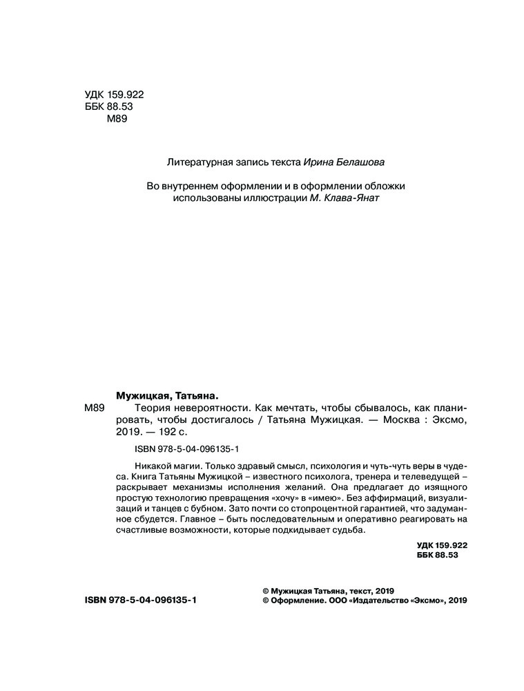 Шикарная книга от шикарного автора. Очень практичные советы. Если не верите в исполнение желаний и т.д., то книга позволяет просто систематизировать Ваши мысли и даёт понимание «а что я вообще хочу в этой жизни». Помогает в общем навести порядок в голове, легко и радостно. Очень приятная на ощупь.