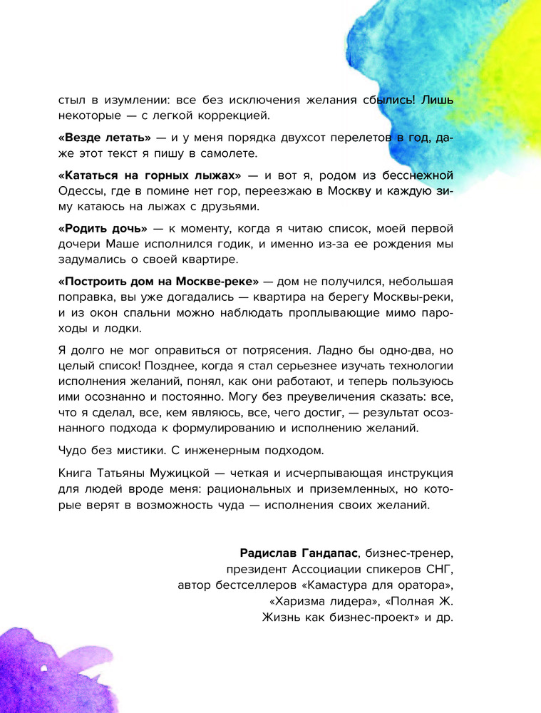 С автором Т.Мужицкой познакомилась раньше, захотелось прочесть и книги. Лёгкая, яркая, интересная, мотивирует, содержательная книга, собственно как и автор. Отличное качество, доставка быстрая, обслуживание на высоте. Благодарю!