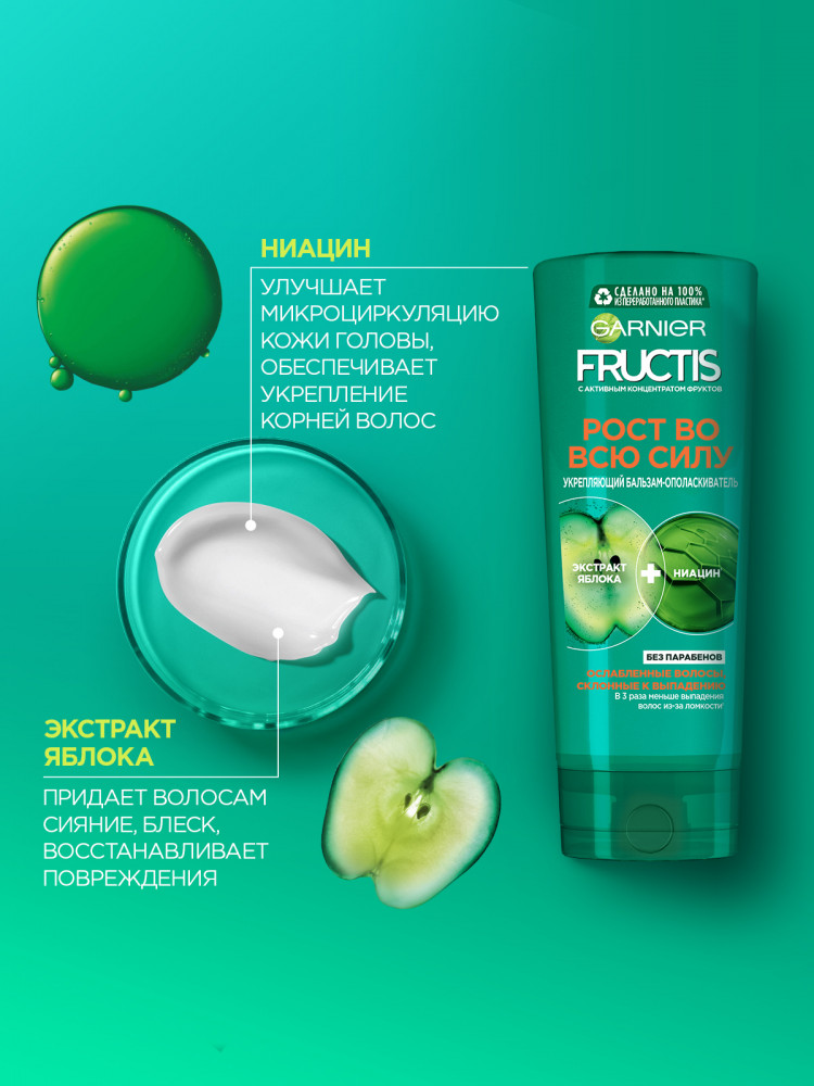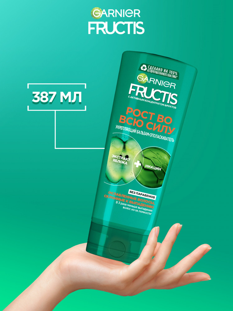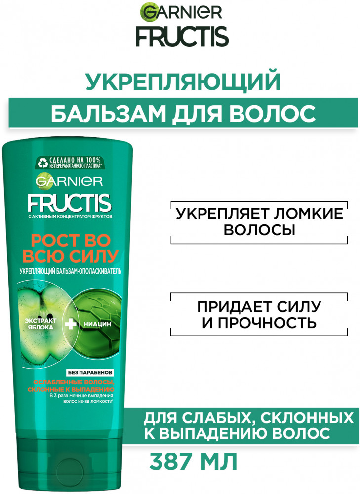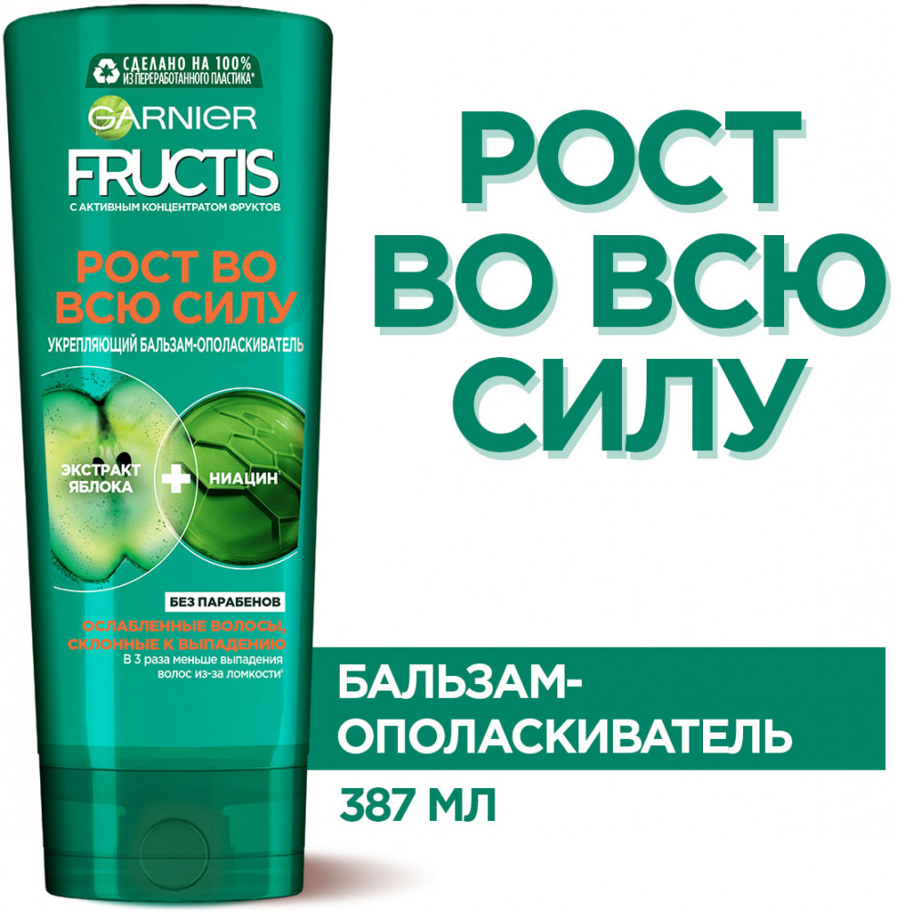 Garnier Бальзам-ополаскиватель «Рост во всю силу» укрепляющий для ослабленных волос, склонных к выпадению, с экстрактом яблока и ниацином