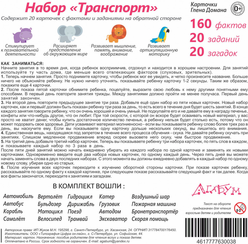 | Набор из 20 карточек «Транспорт» Гленн Доман