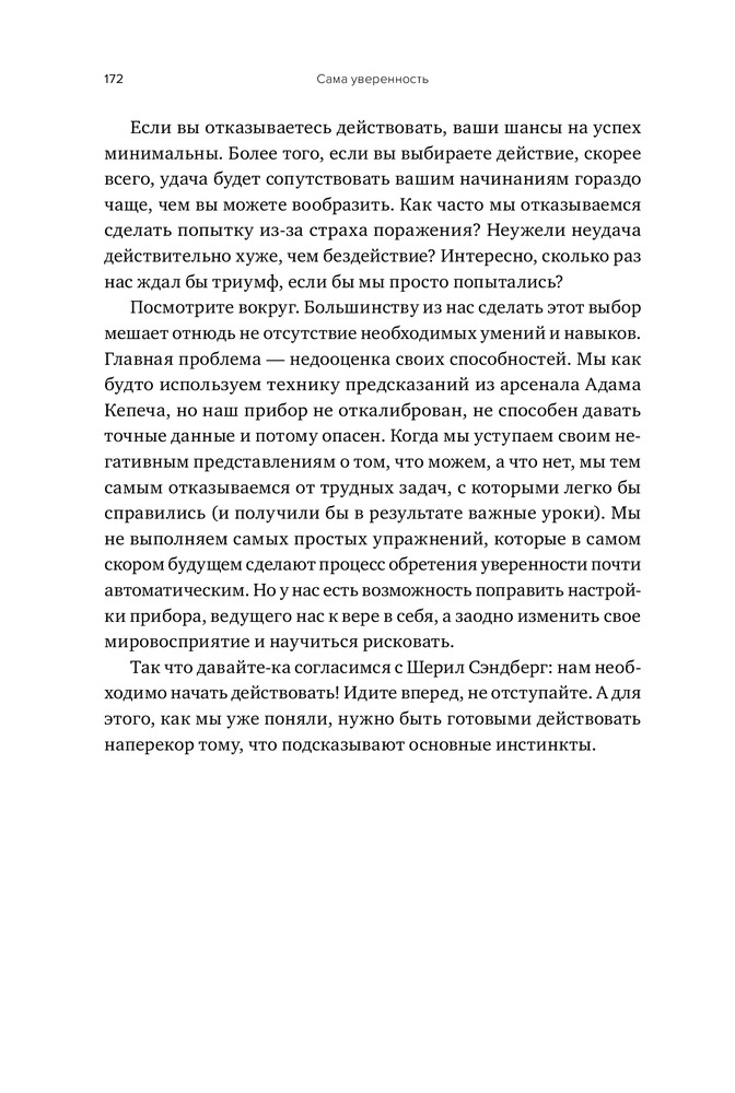 Сама уверенность. Как преодолеть внутренние барьеры и реализовать себяВ данный момент этот товар отсутствует в продаже. Возможно, у нас найдется аналогичный или похожий товар здесь. Серия: Альпина: психология и философия Уверенность в себе — это прекрасно, а вот «самоуверенность»? Мне одной тут слышится негатив? Меня одну волнует вопрос, как не перепутать уверенность с наглостью? Как ее вообще обрести и как заставить ее приносить пользу (вам) и не причинять вред (окружающим)? Подозреваю, что не только меня, — и рекомендую вам эту книжку. Не на все, но на многие вопросы тут можно найти ответы. |