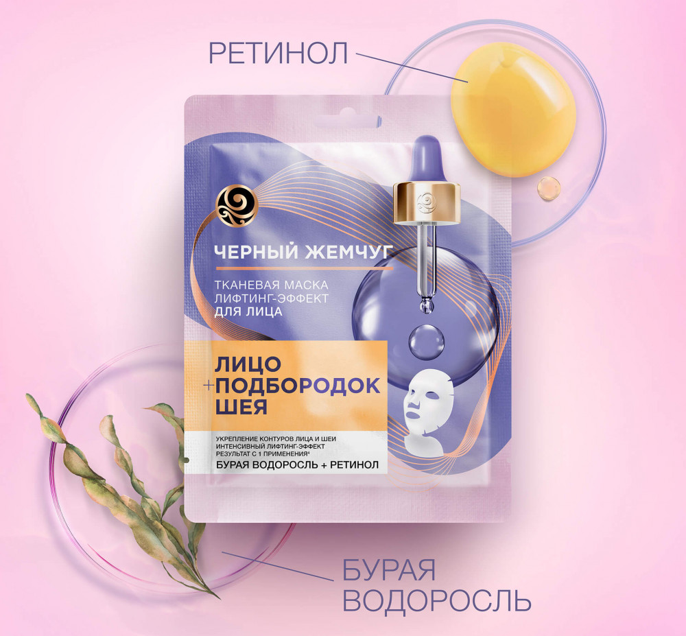 Черный жемчуг Маска для лица тканевая с лифтинг эффектом