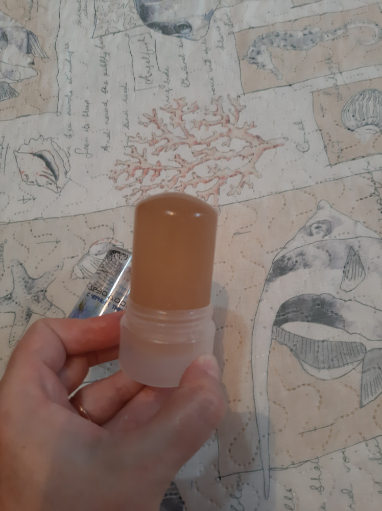 Нанесла на область подмышечной впадины, ничего не заметила, но от запаха пота защищает идеально! Попробовала на вкус - соленый. Интересно, стирается ли камень со временем...