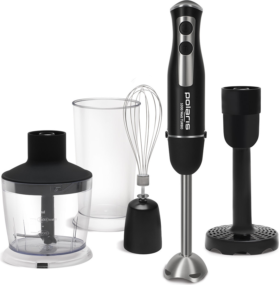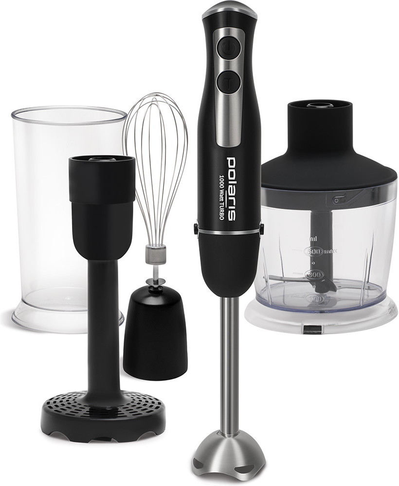 Погружной блендер PHB 0757A 4 в 1: подходит для измельчения, взбивания, смешивания, приготовления пюре. Скоростной режим ТУРБО. Ножи блендера PRO Blade. Насадка блендера из нержавеющей стали. Низкий уровень шума. Чаша измельчителя объемом 0.5 л. Венчик для взбивания из нержавеющей стали. Насадка для приготовления пюре. Мерный стакан объемом 0.6 л. Эргономичная форма ручки.
