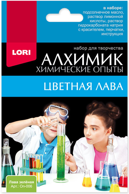 Данный набор дает возможность провести зрелищный эксперимент по созданию бурлящей лавы в домашних условиях. Прозрачная колба с переливающимися каплями цветной массы — именно такой эффект получают пользователи набора, смешав все необходимые ингредиенты.