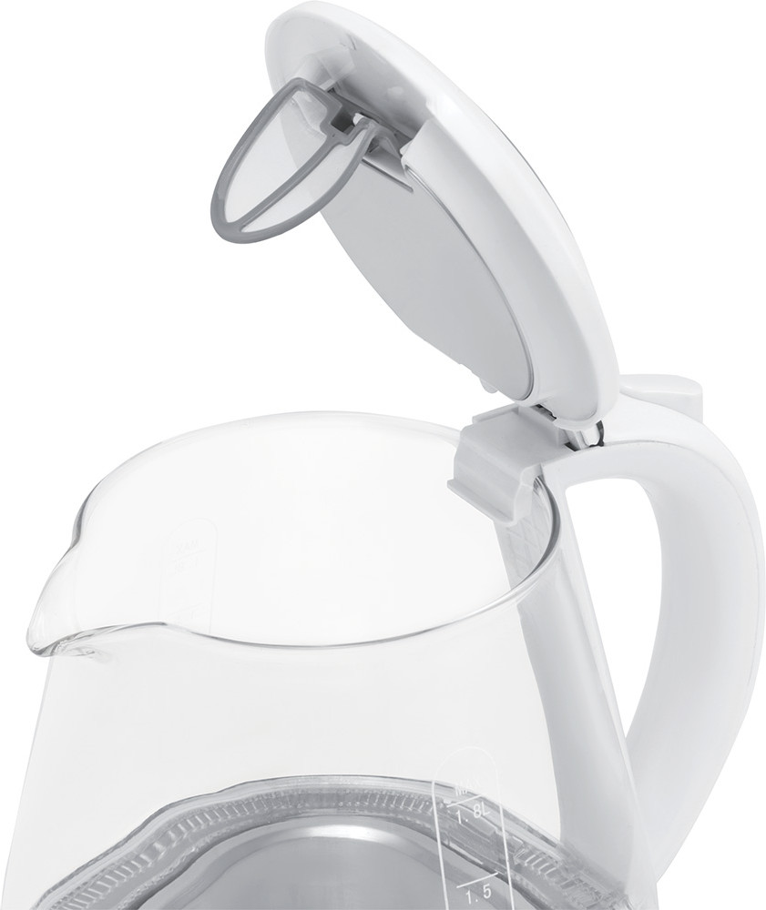 внутренняя подсветка, вращающийся корпус на 360⁰, двусторонняя шкала контроля уровня воды, защита от перегрева, индикатор уровня воды, инструментальная проверка однородности и чистоты стекла, открытие крышки на 90⁰, отсек для хранения шнура, подключение через подставку, скрытый нагревательный элемент, фильтр для очистки воды