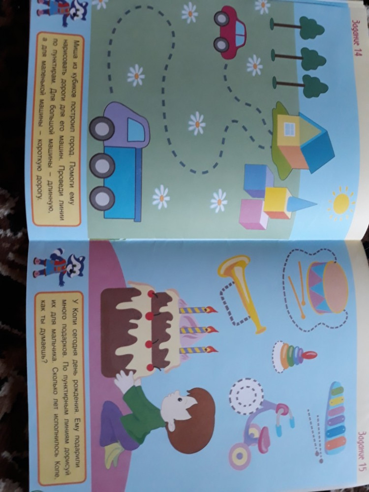 Формат А4. Для 2-3 года, не больше. Задания легкие