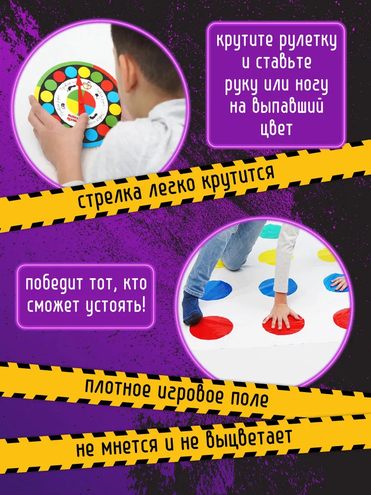 💳 Оплатить за товар можно при получении 🇰🇿 Есть бесплатная доставка по Казахстану 🎁 Копите бонусы с каждой покупки Брейк Данс представляет собой большое игровое поле из полиэтиленовой пленки. Поле размечено четырьмя рядами цветных кругов. В каждом ряду их по шесть штук — желтого, красного, зеленого и синего цветов. |