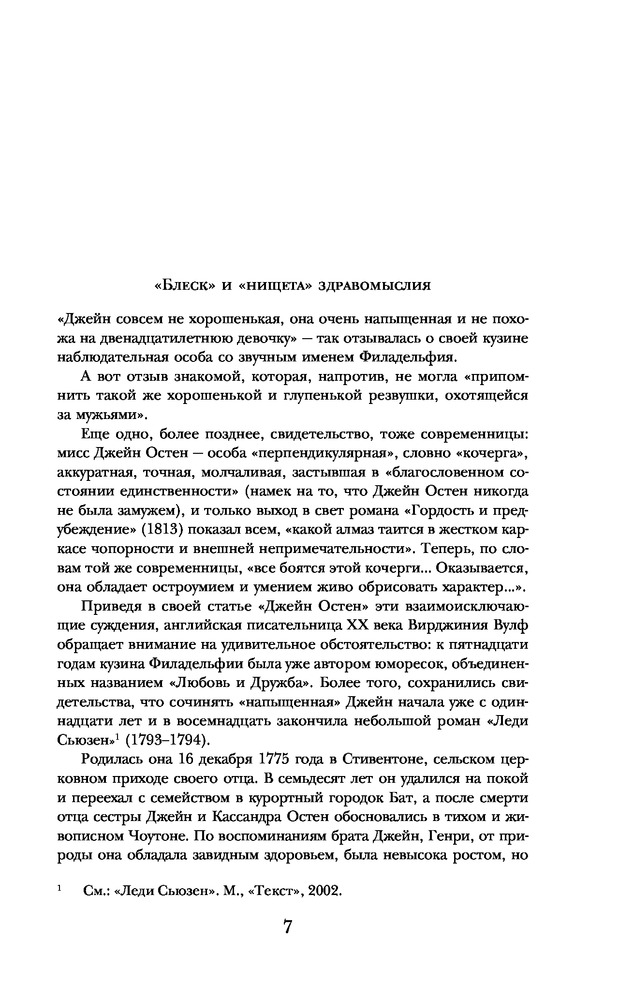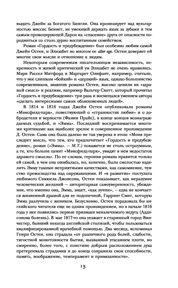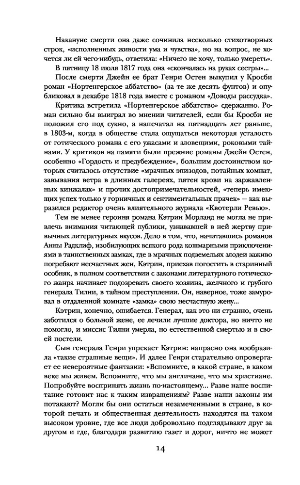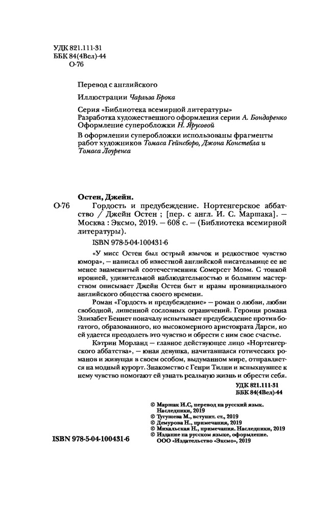 Гордость и предубеждение. Нортенгерское аббатствоВ данный момент этот товар отсутствует в продаже. Возможно, у нас найдется аналогичный или похожий товар здесь. Серия: Библиотека Всемирной Литературы «У мисс Остен был острый язычок и редкостное чувство юмора», — написал об известной английской писательнице ее не менее знаменитый соотечественник Сомерсет Моэм. С тонкой иронией, удивительной наблюдательностью и большим мастерством описывает Джейн Остен быт и нравы провинциального английского общества своего времени.Роман «Гордость и предубеждение» — роман о любви, любви свободной, лишенной сословных ограничений. Героиня романа Элизабет Беннет поначалу испытывает предубеждение против богатого, образованного, но высокомерного аристократа Дарси, но ей удается преодолеть это чувство и обрести с ним свое счастье.Кэтрин Морланд — главное действующее лицо «Нортенгерского аббатства», — юная девушка, начитавшаяся готических романов и живущая в своем особом, выдуманном мире, отправляется на модный курорт. Знакомство с Генри Тилни и вспыхнувшее к нему чувство помогают ей узнать реальную жизнь и обрести себя. |