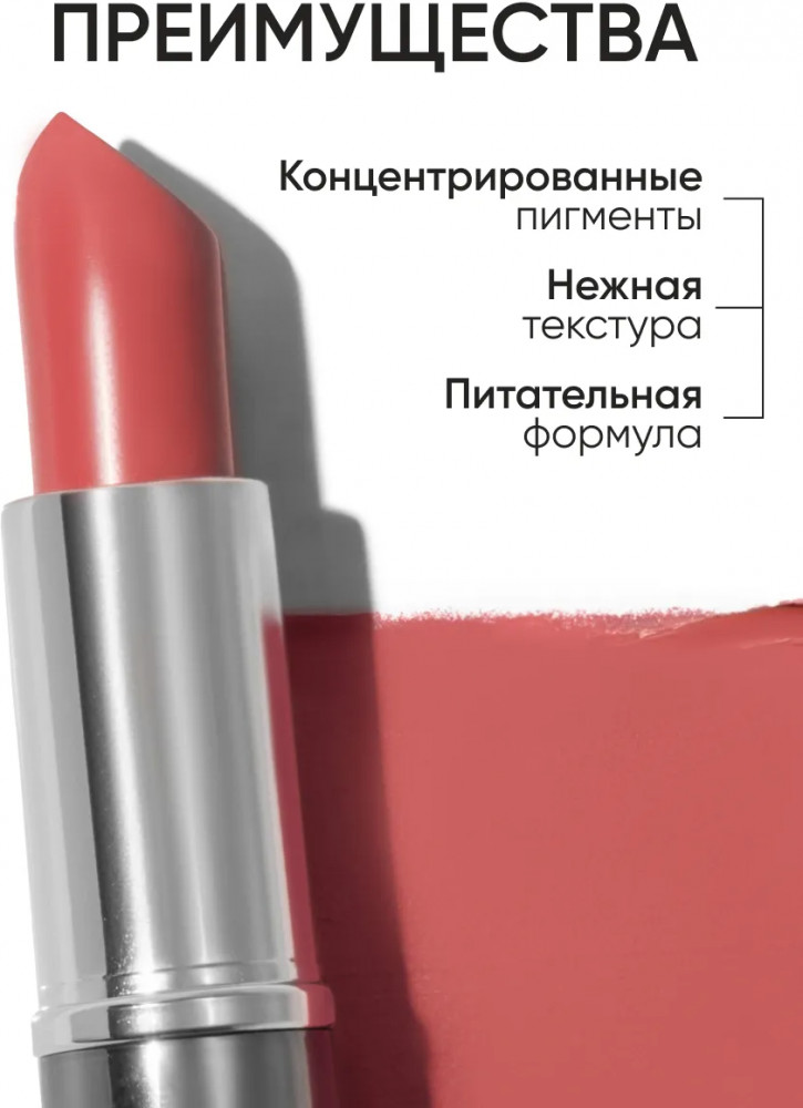Помада очень хорошая, мягкая, увлажняет, не матовая, но и не слишком блестит, плотная, рекомендую. Цвет, да, немного не тот, что на фото.