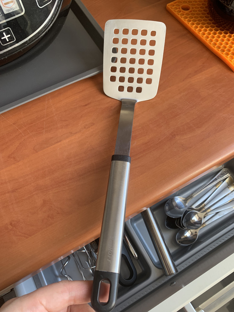 Лопатка суперская! Заказала несколько кухонных принадлежностей этой фирмы и этой серии, все оправдали надежды! Сделана добротно! Металл качественный. Спасибо компании Flip и её работникам! Процветания!