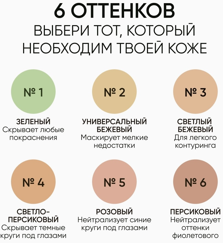 Не знаю, за какие заслуги, получил корректор такие отзывы?! Вобще не справляется со своей задачей, зелёный - даже не маскирует покраснения, жирноват, сильно забивает, что делает его сильно заметным на коже, после нанесения тонального крема, оттенок 03 - синяки не перекрывает, что с ним, что без него!!!